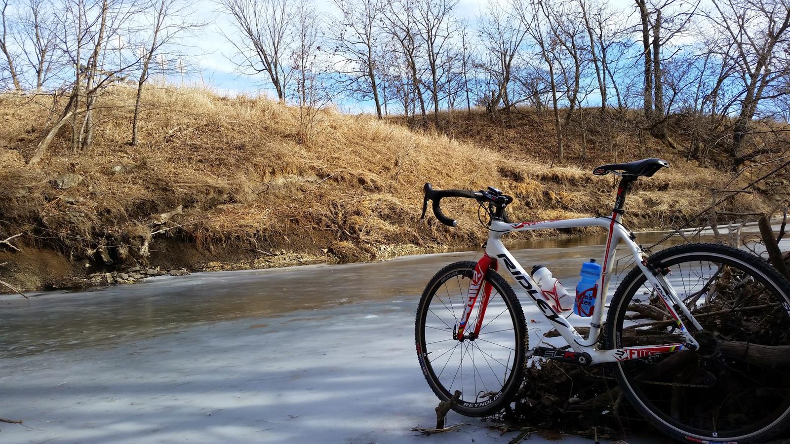 My first Gravel Metric for this year’s challenge took place on Jan 24. I parked in Boonville and headed west toward Earlham. After turning south I come upon a dead end sign followed by a bridge out sign. I kept on going, hoping that the bridge was still there but closed to cars. I soon discovered that the bridge was indeed missing but the good news was that the stream was frozen enough to walk across. My pace was slow and the last four miles seemed long but the after ride beers at the Boonville Bar were tasty indeed.