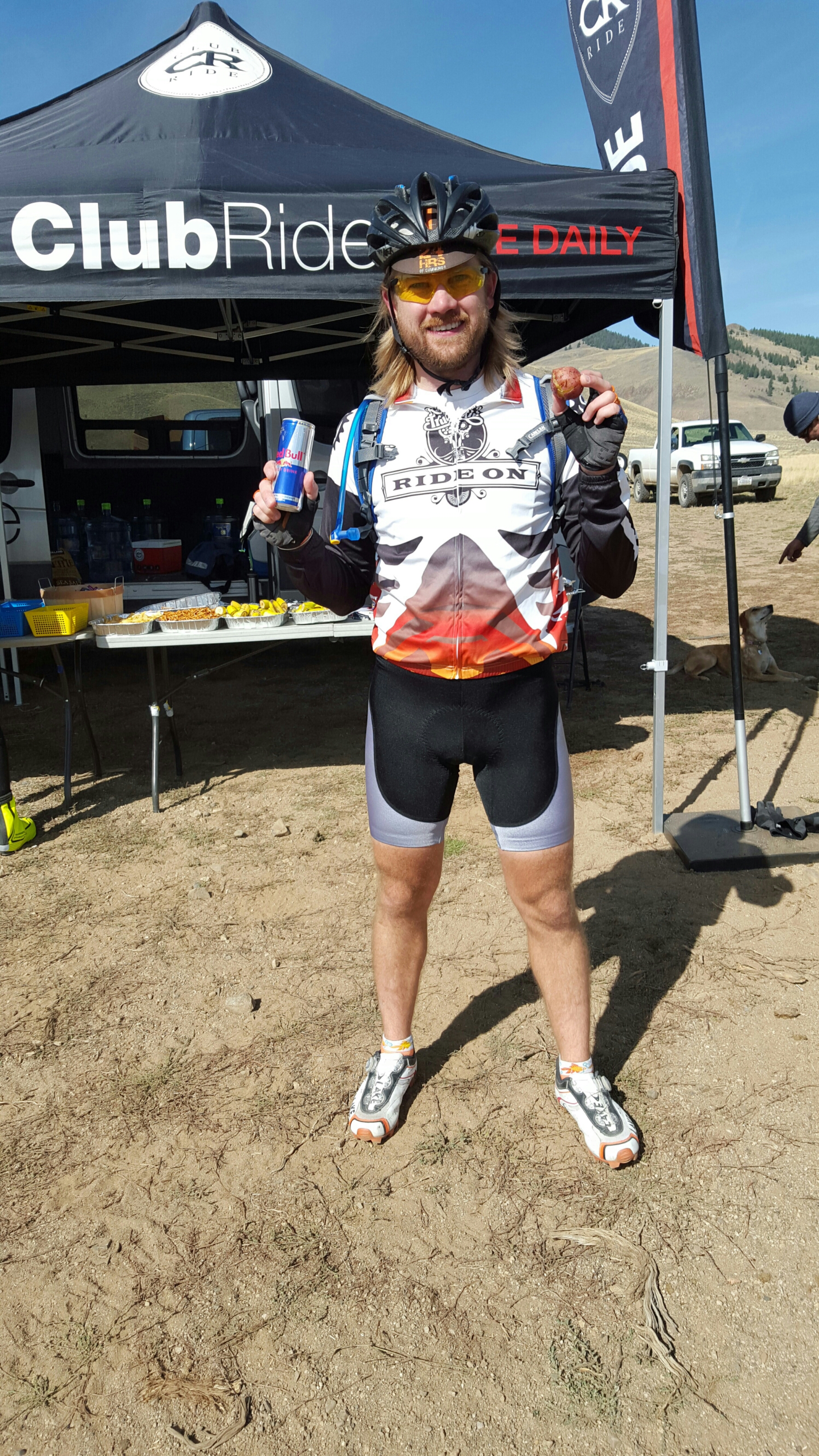 As I checked in I was told the timing chip went on my left fork which was great because I forgot my right one at home! Finally they started and I could work on warming up as the ride started with a climb straight up a moutain. I got to the top and ignored the rest stop and bombed straight down. With a tailwind and slight downhill I was really cooking on my hardtail which maybe had 100 miles on it before this weekend. Cp 2 came and again I blew by it thinking of all the time I was gaining on those fools. At CP 3 I stopped for my obligatory Red Bull and a potato. While enjoying the two treats I realized I had been focusing too much on trying to go fast and not enough on how awesome this ride was. The fact that Neil Shirley crushed by going back in, 30ish miles ahead of me.