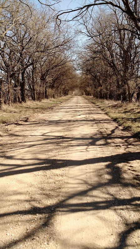 I found some very nice (nice!) roads today, lots of rocks, little shelves, ruts, etc. The less maintained, the better; those sections of thick layers of loose sand are pretty rough. So, there were a lot of opportunities to work on handling, especially descending, and on pacing and shifting up hills. The KHS is still performing admirably overall, but I am finding the limits of Claris.