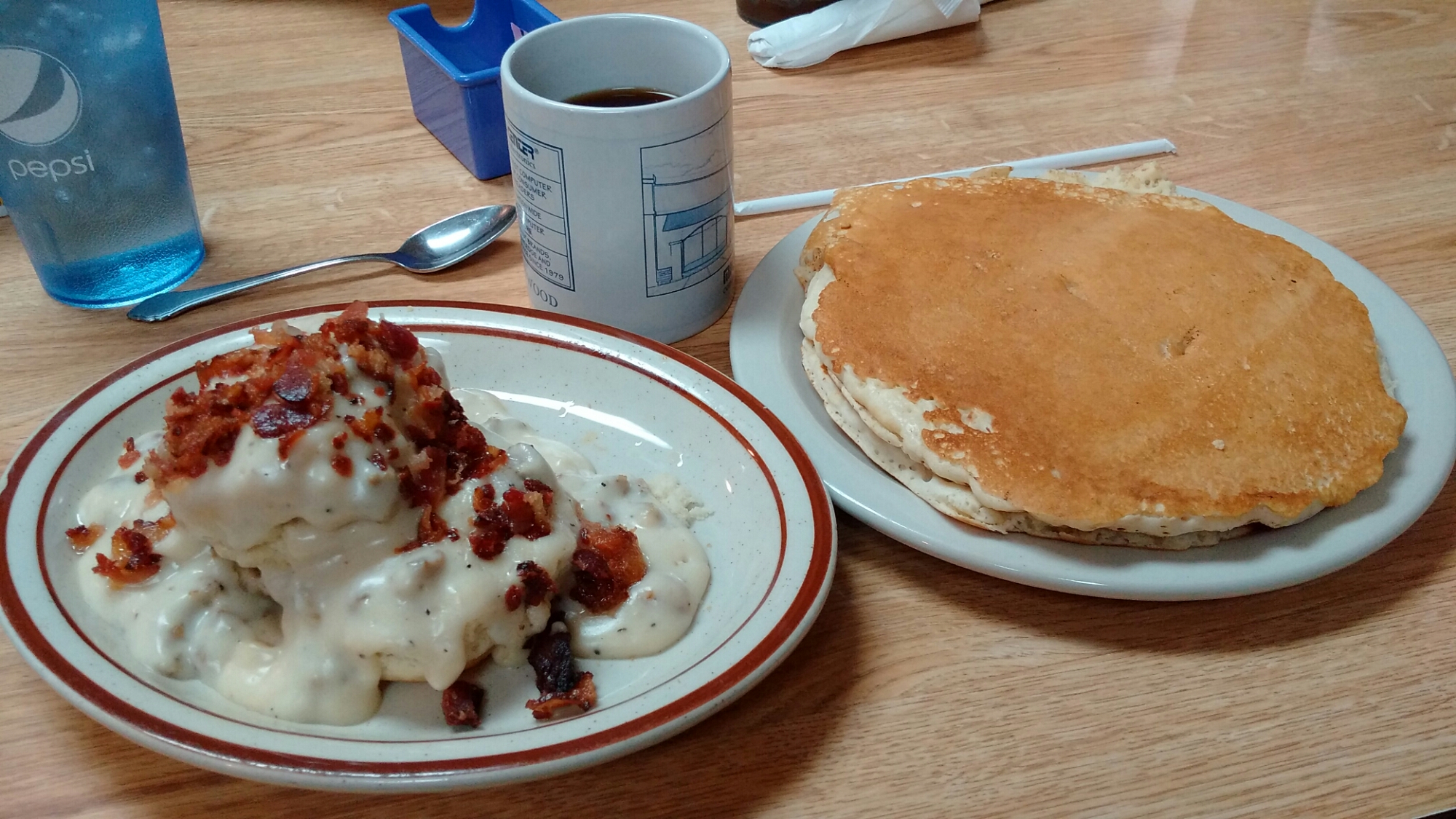 “We rolled out from “The Mound” near Weldon Spring, Missouri just after sunrise; our objective was a hearty breakfast at Dutzow Deli. Navigation was simple — follow the Hamburg Trail to the Katy Trail and turn right…both trails are gravel and the Katy literally cuts through the deli parking lot. Dutzow Deli features a couple of signature items on the breakfast menu, including The Volcano and The Katy Scrambler, and happily a bottomless cup of coffee. Breakfast always seems to taste better after a brisk morning ride.