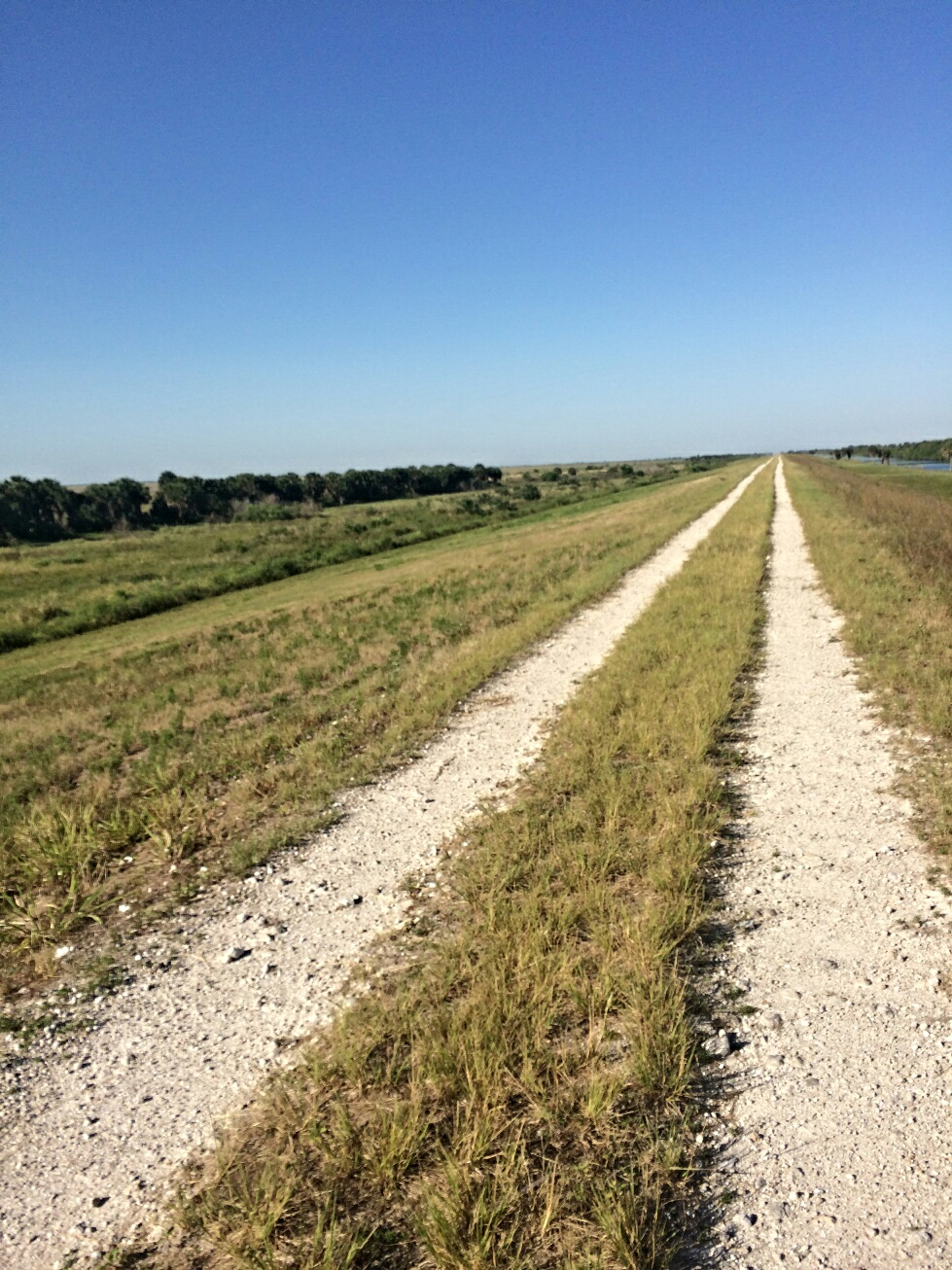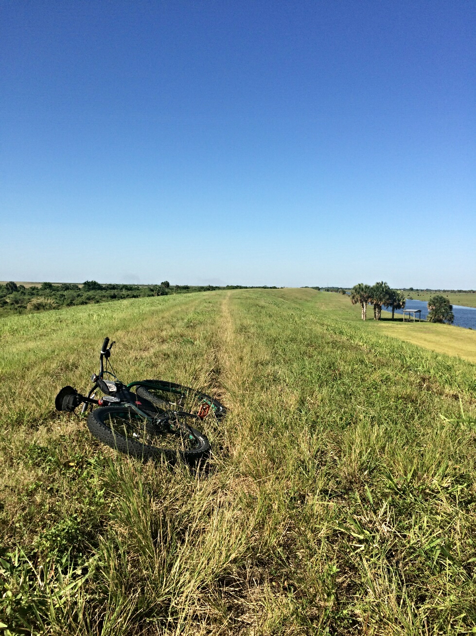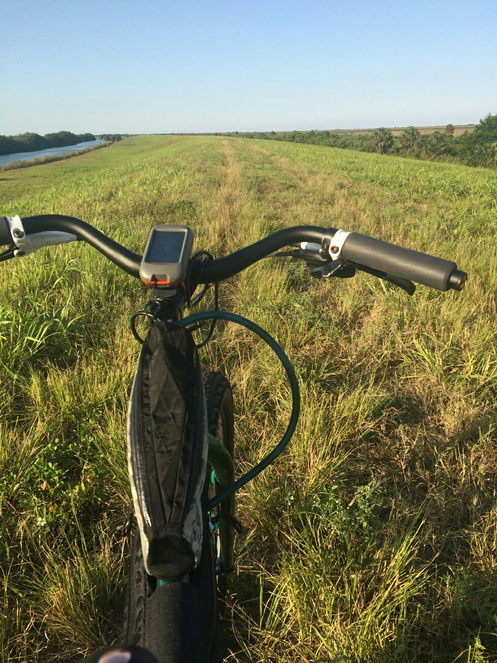 “This was going to be a ride around Lake Okeechobee, which I’ve done several times, but last time was 3 years ago. It’s about 118 mile loop around the lake on the dam, with the west side mostly very bumpy limestone road and deep grass, the south and most most of the east smooth fast gravel, and the north side mostly paved bike trail.