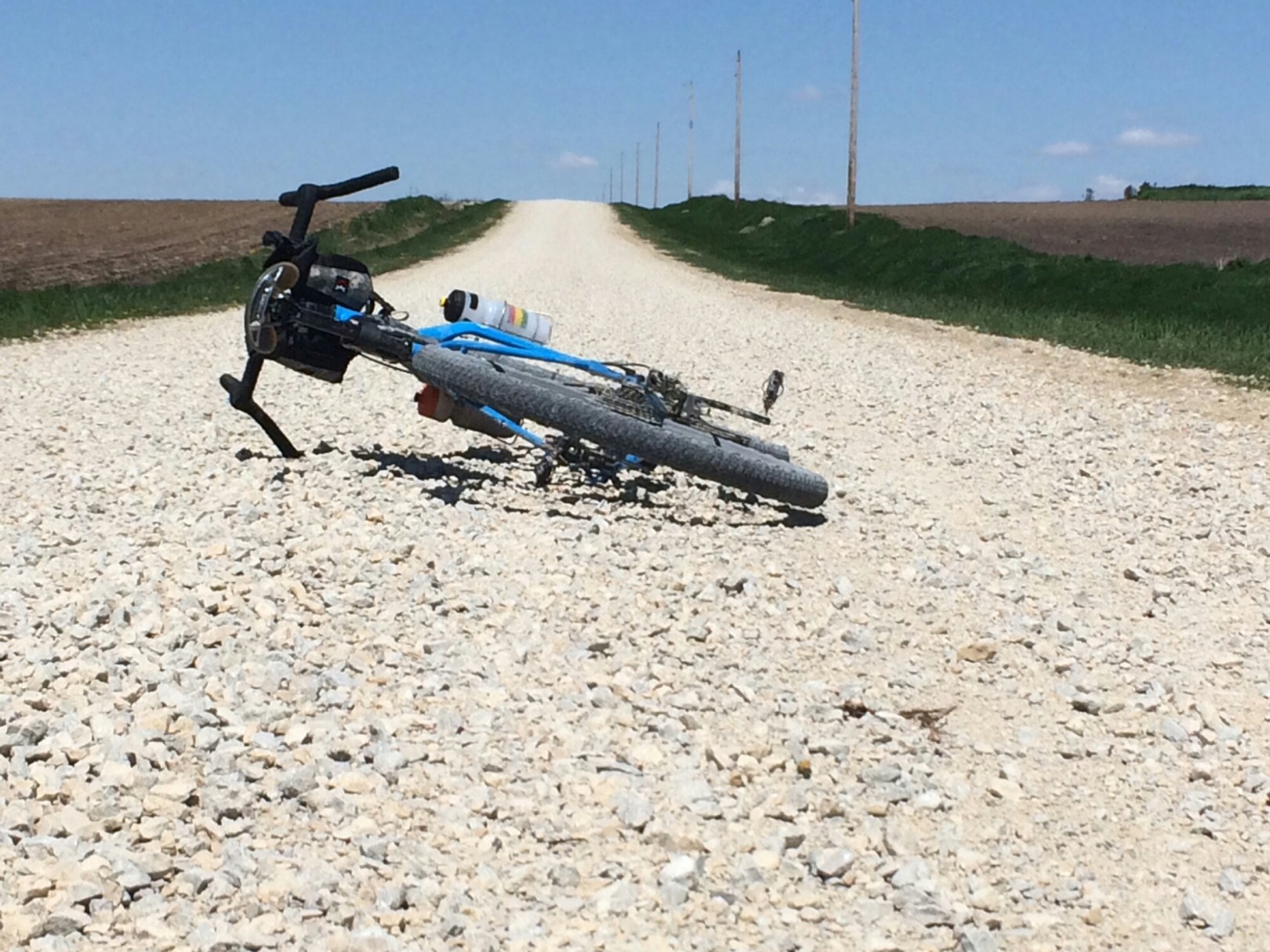 I passed a farm wife riding her bicycle and I dodged an angry Chihuahua that was half the size of your average barn cat. The wind was getting stronger and the big wheels and bags on the bike made the cross winds tricky. The road maintainers were out in force and I found a few miles of deep, fresh gravel. I stopped in Tripoli and bought water and food for the rest of the ride. A lot of farmers were finishing up their corn planting, and many were starting to plant soy beans. I headed South for a few miles and savored the tailwind for a change. I zig-zagged a few miles South and then a mile or two West until I reached the Denver Hills. It was pretty much all tailwind from there. When I got home, I checked the weather and saw that the winds had been gusting over 35 mph. The sun never came out and the wind blew all day, but I managed to ride 66.5 miles.”