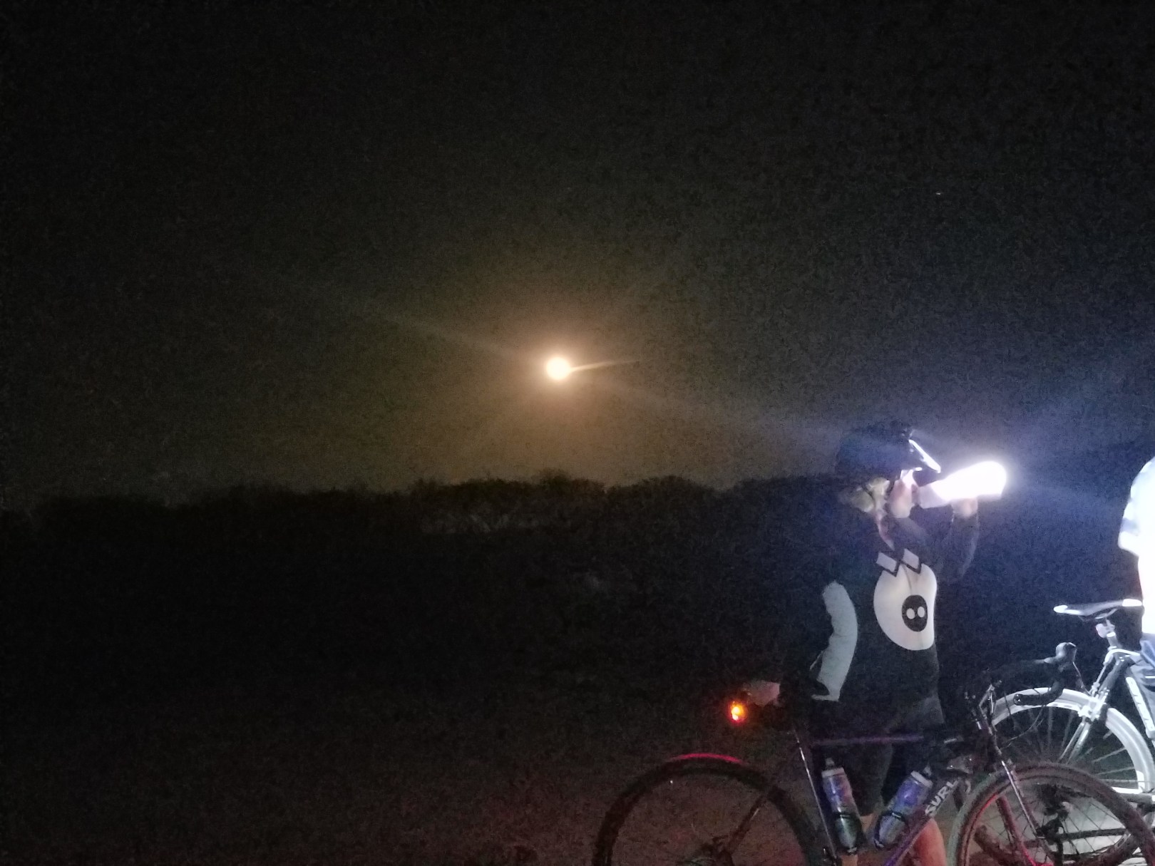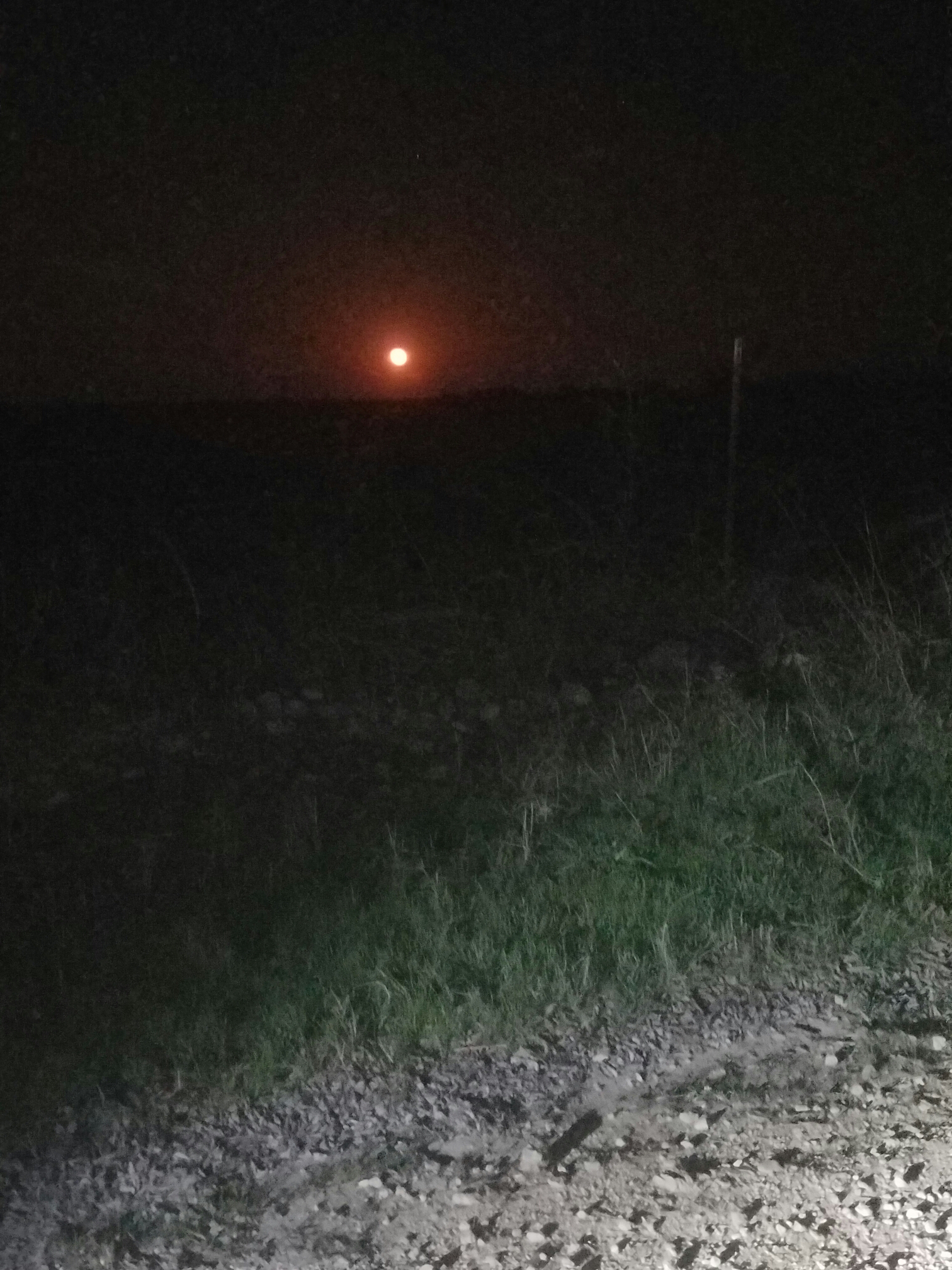 The moon popped up about mile #3, low and orange, a beauty to see.
