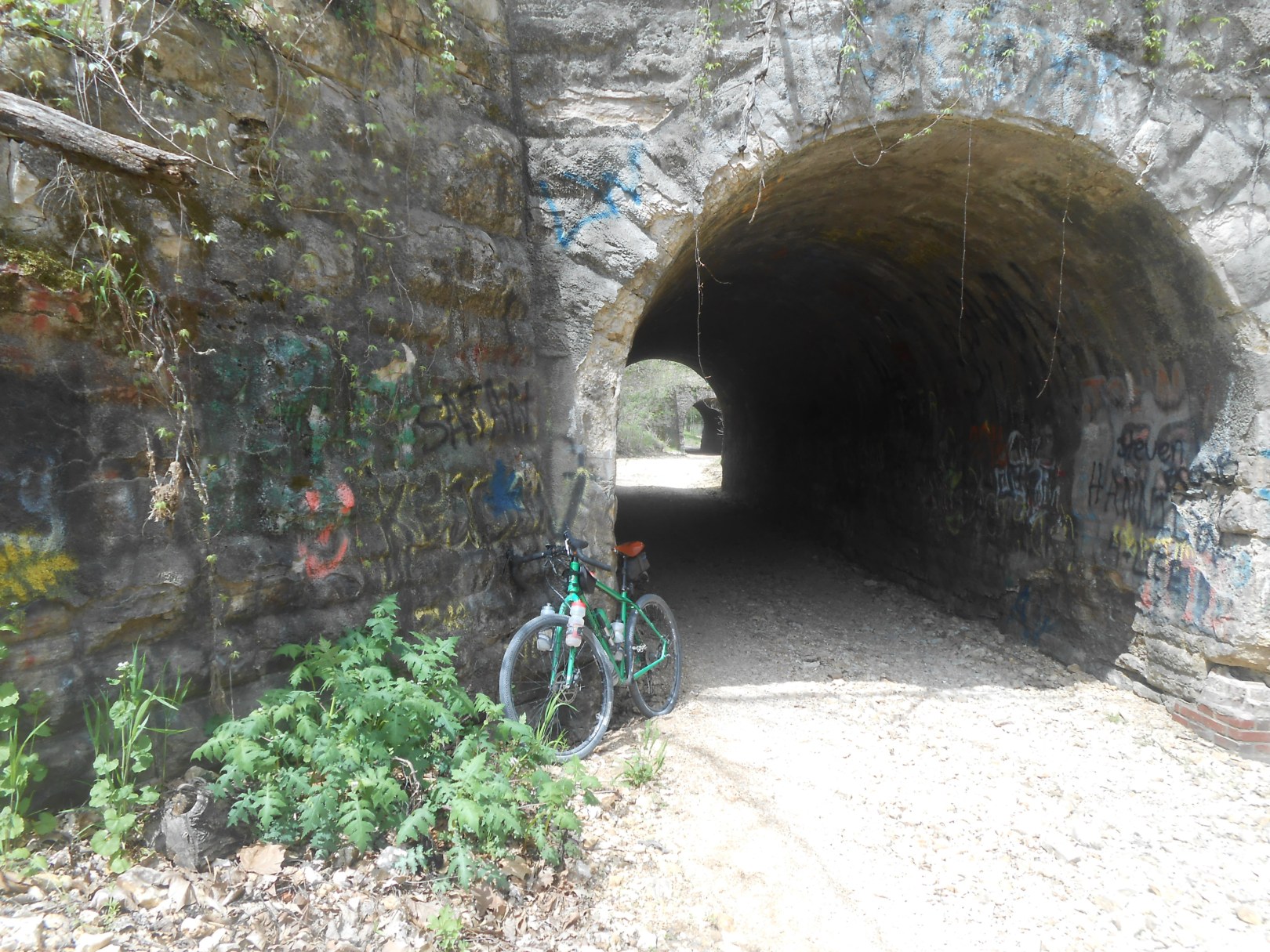 After a quick snack it was off to the twin tunnels. The climb up and over the bluff to get there was a good one. Once over the top the gradual decent to the river bottom was on one of those roads that reminded me of “Deliverence”.